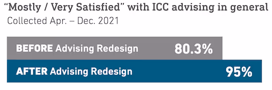 14.7 percentage point improvement in ICC student satisfaction after the Year 1 redesign.